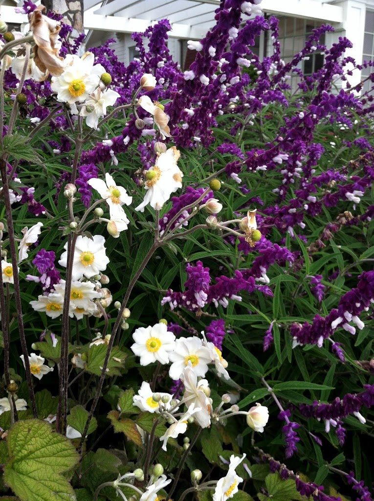 Mexican sage (salvia leucantha) and Japanese anemone. A stunning combination!