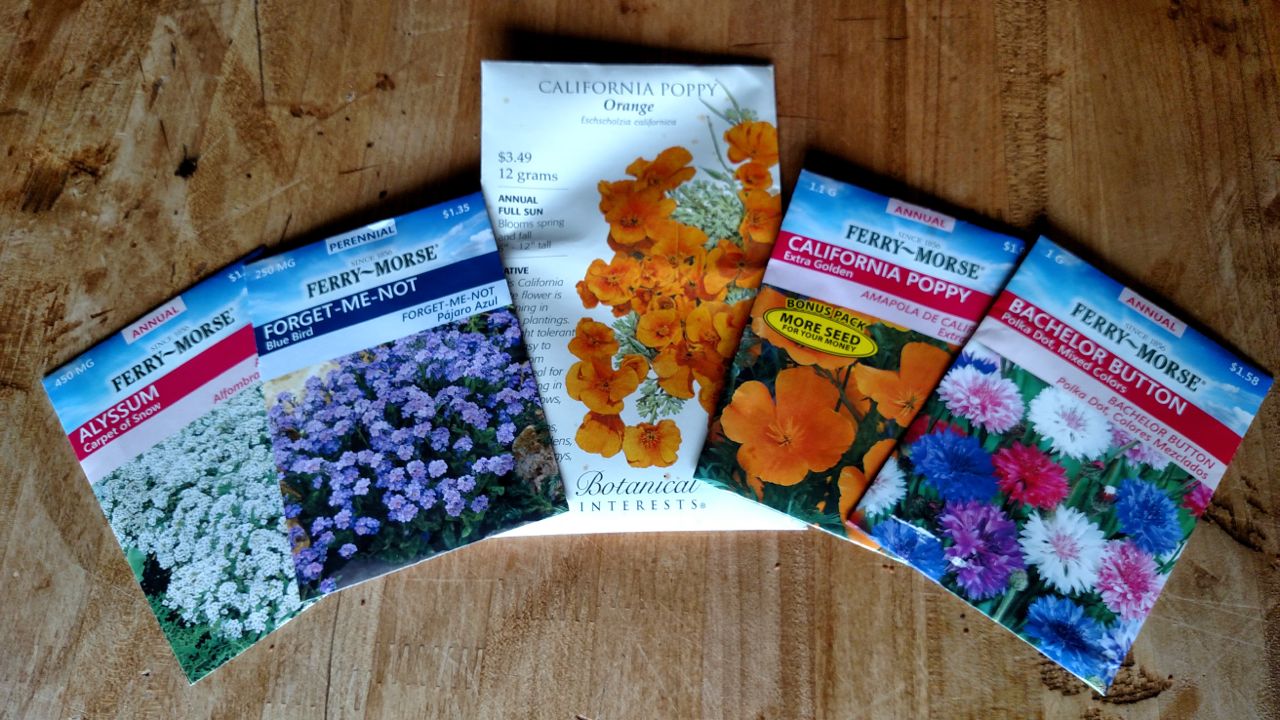 - 3 – 4 packages of wildflower seeds (California poppies are my favorite)